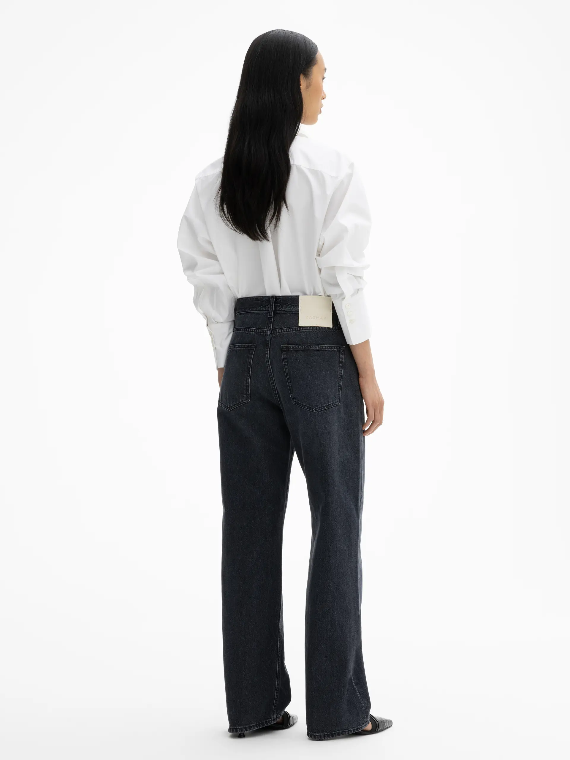 Crafted from organic cotton, the Loose Fit Denim is a mid-rise 5-pocket jean. Offered with an effortless, straight, and wide-leg frame, this contemporary staple is accentuated by top-stitch detailing at the front.