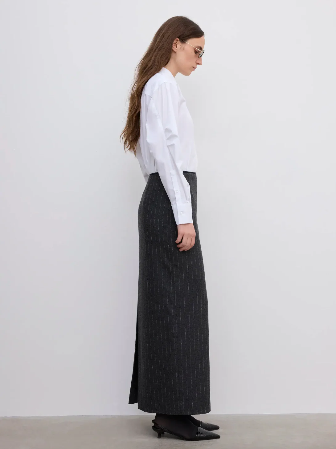 -70%Pencil Maxi Skirt: Grey Pinstripe—